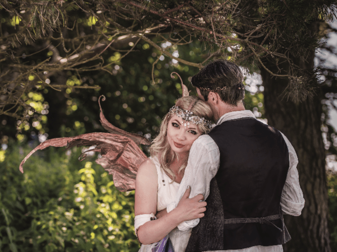 The King and Queen of Elfhame themselves must have possessed us at that very moment, because once I had laced my beautiful Faerie wedding gown from Izzy Ivy Bridal, and topped it off with my stunning head piece from Ambur Rose Designs, I truly felt like Titania, with my handsome Oberon by my side.
