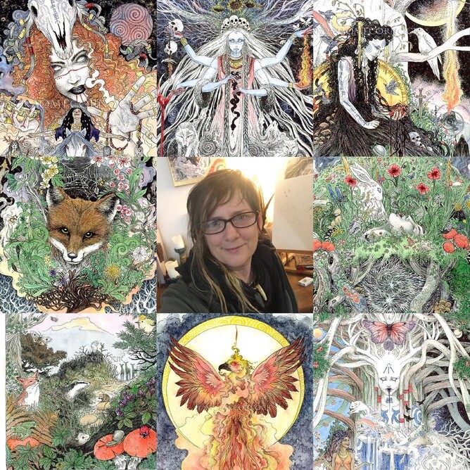 Jo is one of my closest friends. She is a working witch and an incredible artist. She's also a sacred creative and crafts jewellery and magical tools. Her beautiful paintings now adorn many walls all over the world, and she also designs album covers and accepts commissions. Jo lives in Cheshire and organises fabulous retreats and workshops in art, natural crafts and magic. She is also an animal rescuer and presently has Pharoah and Maia, two beautiful dogs living with her who are both blind and prior to living with Jo suffered abuse. Jo has also helped to rescue many other dogs and find loving and caring homes for them. Together with me, Jackie Juno and Kate Hazelwood Jo co-organised the Cauldron Gathering in Wales and is now offering magical retreats in Cheshire designed to empower women and reconnect them back to the real magic of our Earth. To find out more visit her Face Book page 'Dreamspaceart' and 'Ravenheart Natural Witchcraft'.
